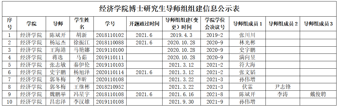 二、研究生导师组原则上应在该生学位论文开题前组建,组建后不得随意变更。学院导师组详细名单和具体信息附后,以供相互监督。研究生导师组的日常管理由研究生导师和培养单位共同负责,研究生导师作为研究生培养第一责任人的职责不变。