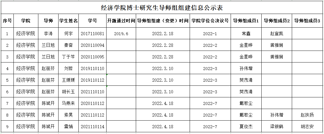 二、研究生导师组原则上应在该生学位论文开题前组建,组建后不得随意变更。学院导师组详细名单和具体信息附后,以供相互监督。研究生导师组的日常管理由研究生导师和培养单位共同负责,研究生导师作为研究生培养第一责任人的职责不变。