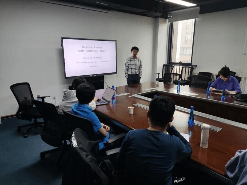 2023年5月19日14:00,香港中文大学院长聘副教授高超禹应awc777万象城娱乐官网邀请,开展主题为“Monopsony Employer under Repeated Moral Hazard”的讲座,高超禹老师受到了老师和同学们的热烈欢迎!awc777万象城娱乐官网黄乃静副教授主持讲座,尹振东教授,龚雅娴老师参加了讲座。