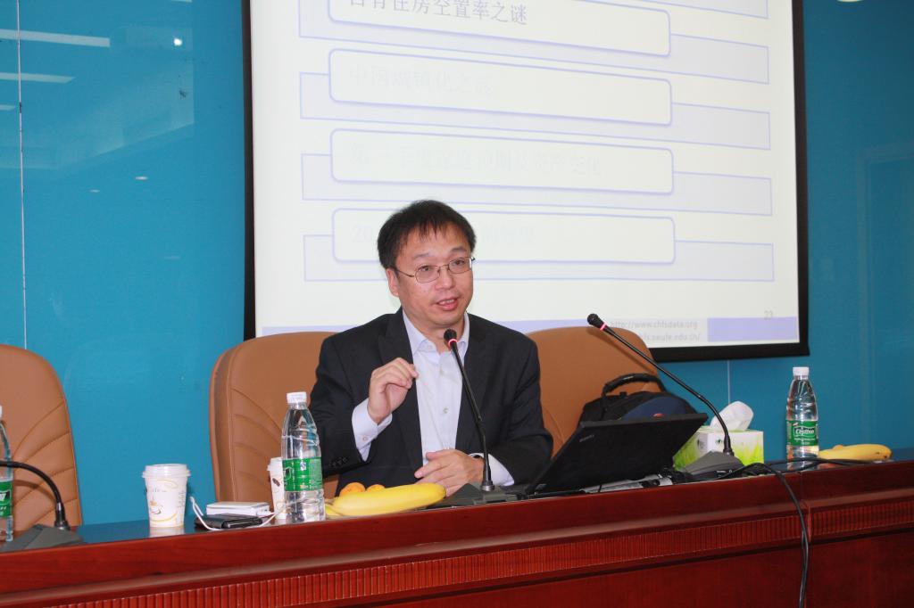 2014年11月6日下午,awc777万象城娱乐官网邀请到知名学者甘犁教授来万象城官网交流,在学术会堂702为万象城官网师生带来了题为“中国自有房空置率之谜”的专题讲座。讲座由awc777万象城娱乐官网院长李涛教授主持,教务处副处长张苏、awc777万象城娱乐官网副院长陈斌开以及来自万象城官网各个学院的十余位教师出席了讲座,讲座还吸引了两校区数十名硕博学生参与,讲座现场气氛热烈,座无虚席。