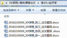 6.采用课程论文写作考核形式的课程,课程论文电子版请以学院为单位,于2020年2月21日16:00前提交至研究生院培养办公室。格式要求如下:1.以“学院名称+期末课程论文”命名文件夹;2.每门课程论文以“授课教师姓名+课程名称”命名文件夹;3.每篇论文以“学号_学院_姓名_论文题目”命名。图例: