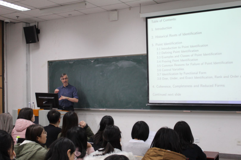 作为计量经济学、应用微观经济学和应用宏观经济学领域的重要研究内容,识别问题受到广泛关注。Arthur Lewbel教授对多个与识别有关的术语概念(如集合识别(setidentification)、因果识别(causal identification)、局部识别(local identification)、弱识别(weakidentification)以及无穷识别(identification at infinity)等)进行了梳理和比较,并讨论其应用于不同模型时的区别和联系,以更精准的应用于学术研究。在课程的最后,Lewbel教授深入浅出地分享了英文学术论文的写作和发表经验建议,并且和多位老师进行了一对一的学术交流。