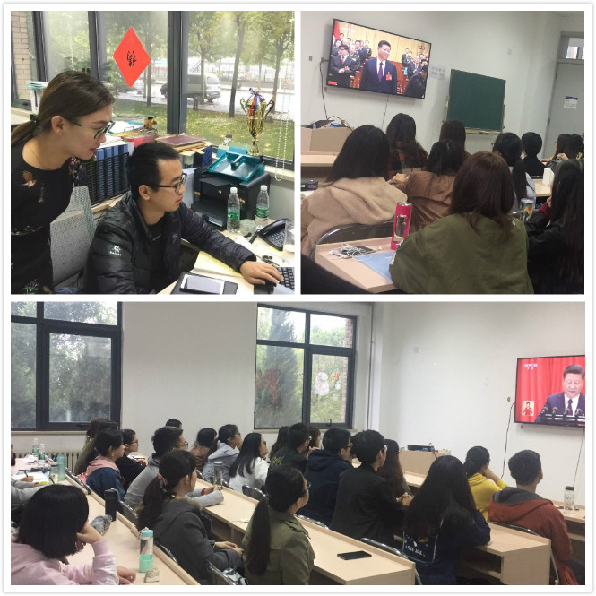10月18日上午九时,中国共产党第十九次全国代表大会在北京胜利召开。awc777万象城娱乐官网在学院南路校区、沙河校区分别组织师生集体收看大会直播,认真学习领会大会精神。在收看党的十九大开幕会盛况后,学院师生备受鼓舞,围绕开幕盛况和总书记报告在两校区进行了热烈讨论。