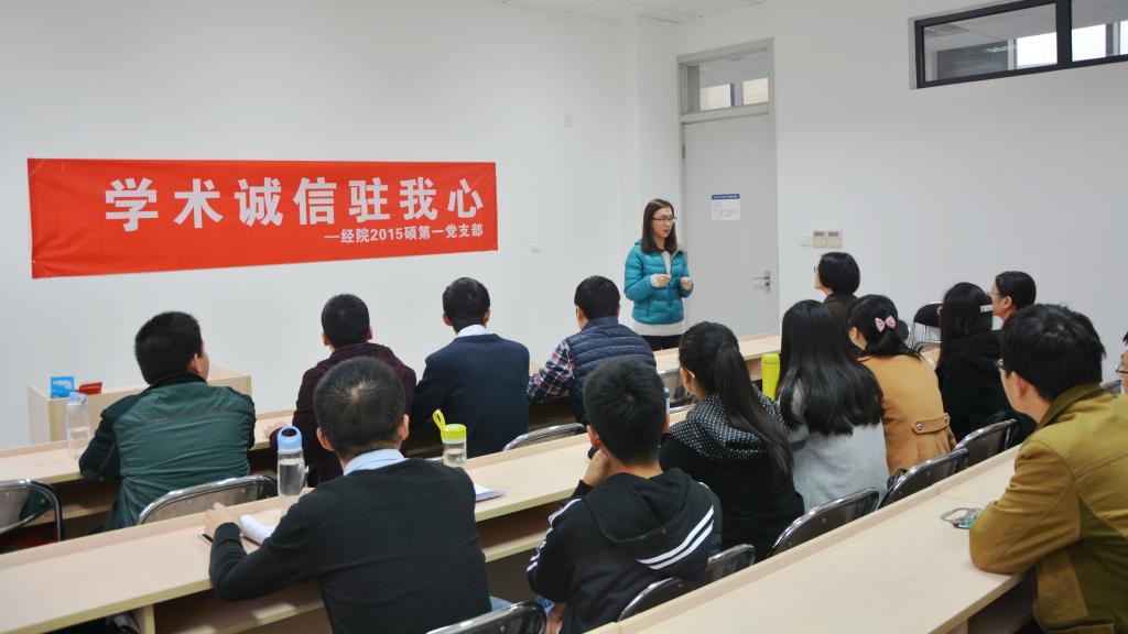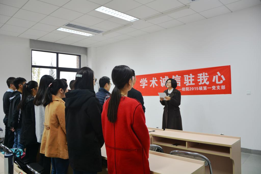 为铭记践行社会主义核心价值观—诚信,端正学术之风,awc777万象城娱乐官网2015硕第一党支部开展了“学术诚信驻我心主题教育活动”。活动在awc777万象城娱乐官网1号楼进行,awc777万象城娱乐官网的任老师为同学们做了学术诚信的讲座,任老师用生动的例子为我们讲述了诚信的价值内涵,剖析了学术诚信应遵守的原则,活动的参与者进行积极的发言,讨论对学术诚信的认知,最后集体进行了学术诚信宣誓,并且在横幅上签名留念,活动取得了良好的效果,学术诚信驻进每位同学之心,人人都争当诚信的代言人。