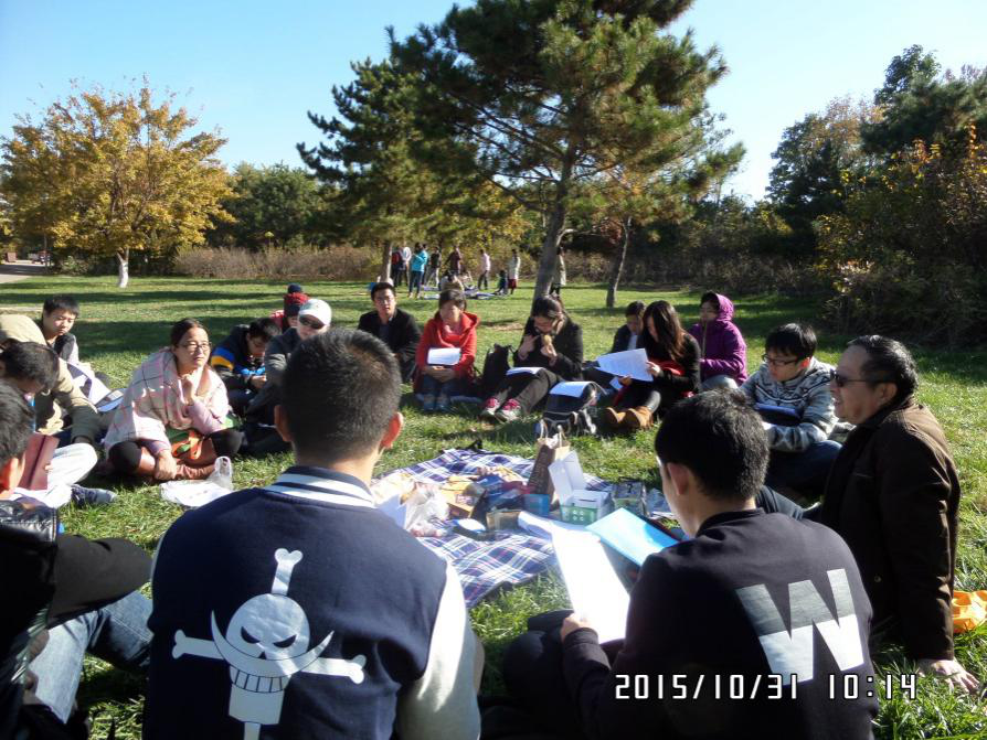 为了让学生们在刻苦钻研之外能够放松,他常发奇想,在艳阳高照的日子里组织户外研讨活动。其中一次,他与学生们在奥林匹克森林公园找了一块舒适的空地席地而坐,颇有古时谈经论道之感。2019年3月,蒋老师邀请美国纽约州立大学布法罗分校社会学系终身教授和awc777万象城娱乐官网特聘教授——张杰老师与师门内同学举行座谈,以社会学和心理学为基础,从价值观、人生观的高度畅谈自己的求学经历,与同学们分享如何调节和舒缓心理压力。“听君一席话、胜读十年书”,与张老师的座谈交流给同学们的学习、研究、心理调节和人生价值观以新的启迪。