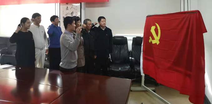 介绍完毕后,宏观经济学系教工党支部所有党员,面向党旗,庄严宣誓,重温入党誓词。