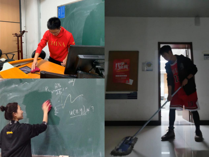 17、18级以及研究生小组打扫校园环境和宿舍楼卫生