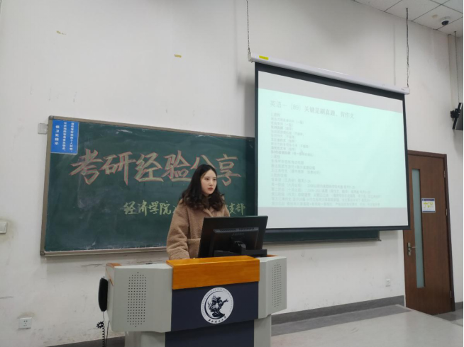 首先进行分享的是以第一名的成绩考入中财awc777万象城娱乐官网20级国民经济学硕士生张可迎。她详细分享了英语一、数学三、政治、801综合四个科目的备考经验。她分别从书本资料选择、网课选取以及在不同阶段该如何进行科目时间分配等方面做了具体介绍。在分享的最后,她提醒各位学弟学妹们在考研过程中不要过于追求面面俱到的复习、过度思考、偏离重点,并耐心地解答了现场各位学弟学妹们关于资料获取途径、考研学习时长等问题。