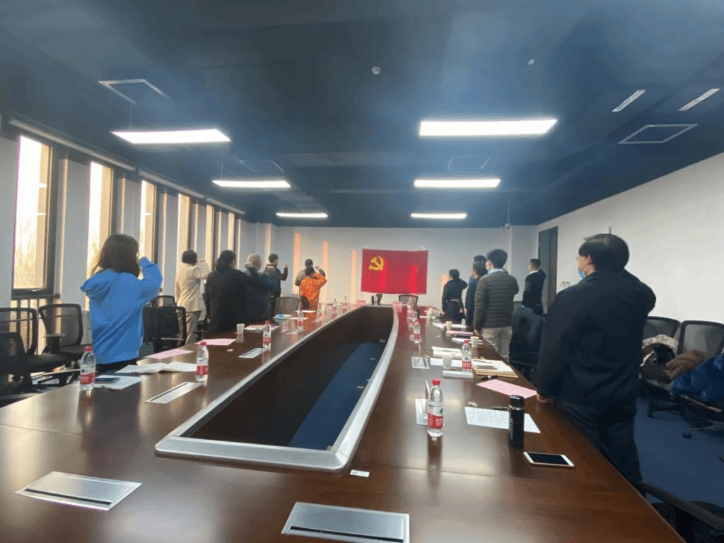 活动最后,全体党员起立,面向党旗,共同重温入党誓词。