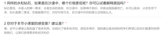 此外,为了增加小课堂的互动性,我们以问卷形式收集了大家的问题和建议,并且还专门建立了“中财宕昌经济学小课堂交流群”供大家进一步学习和交流。每一期的话题都能引发同学们的思考,能够在所学知识的基础上结合实际问题举一反三;遇到不太理解的地方也能够及时提出供大家讨论。除此之外,通过回答问卷中的小问题也能起到及时巩固的效果。每一次的交流互动,都是发现问题与解决问题的过程;同时,也是激发兴趣与汲取力量的过程。
