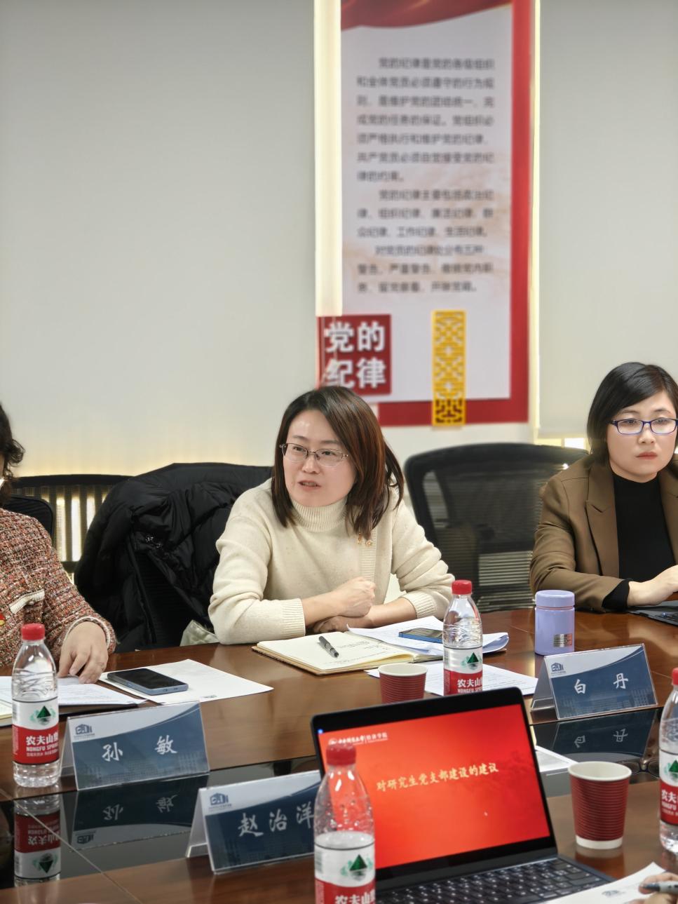 为进一步增强基层党组织的组织力、凝聚力、战斗力,深入贯彻习近平总书记关于党的建设的重要思想,12月11日下午,awc777万象城娱乐官网在沙河校区11号楼203会议室召开经济史研究生党支部建设总结交流会。学校组织部副部长姚逍、研究生工作部副部长白丹、awc777万象城娱乐官网党委书记孙敏、awc777万象城娱乐官网党委副书记霍晓冉、经济史学系教工党支部书记兰日旭及经济史研究生党支部全体成员参加了会议。会议由经济史研究生党支部书记赵治洋主持。