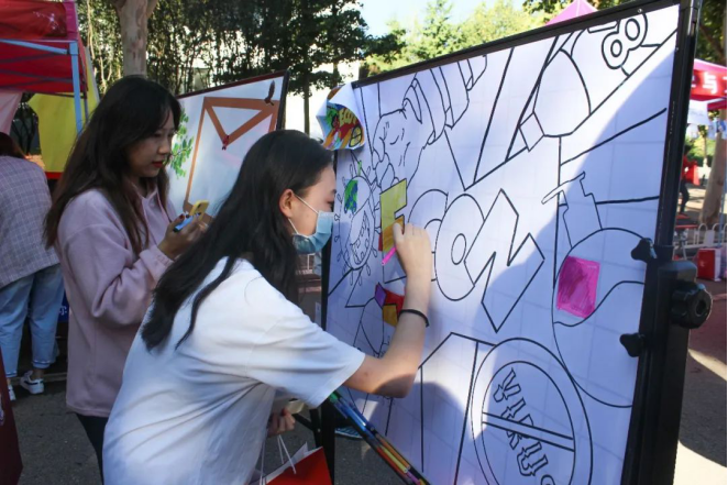 为了增强新生在特殊时期开学的归属感,学院更是精心准备了特别的环节。通过幸运转盘为新生们发放防疫物资,保障新生在校期间的防疫安全;写下自己的名字并亲手粘在信封上,寓意着为未来插上翅膀,飞向远方;用自己的创意为防疫板报添上一笔,为战疫贡献自己的力量;与经院吉祥物一颗糯米拍照留念,给自己的大学生活留下开端的纪念。