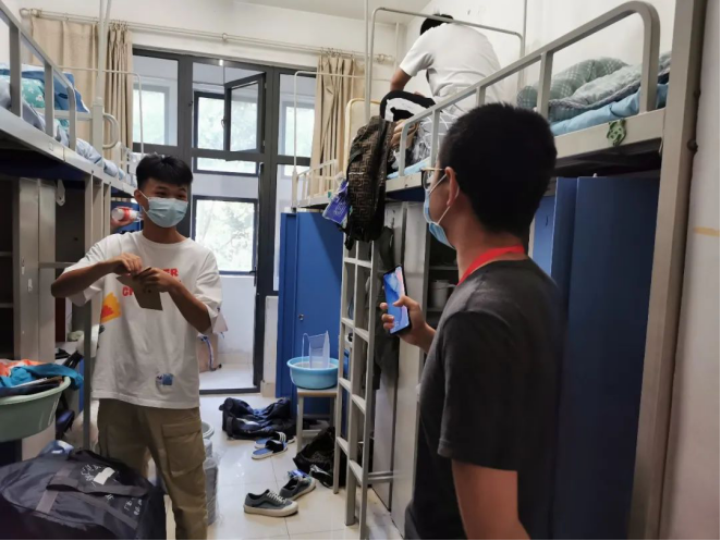 学院党委副书记耿卉、学院学工办主任梁延东、2020级本科生辅导员周子渝等老师全程参与迎新工作,并特意前往新生宿舍进行慰问,为初入校园的新生送去了无限的关怀和温暖,一扫与家人离别的思念。