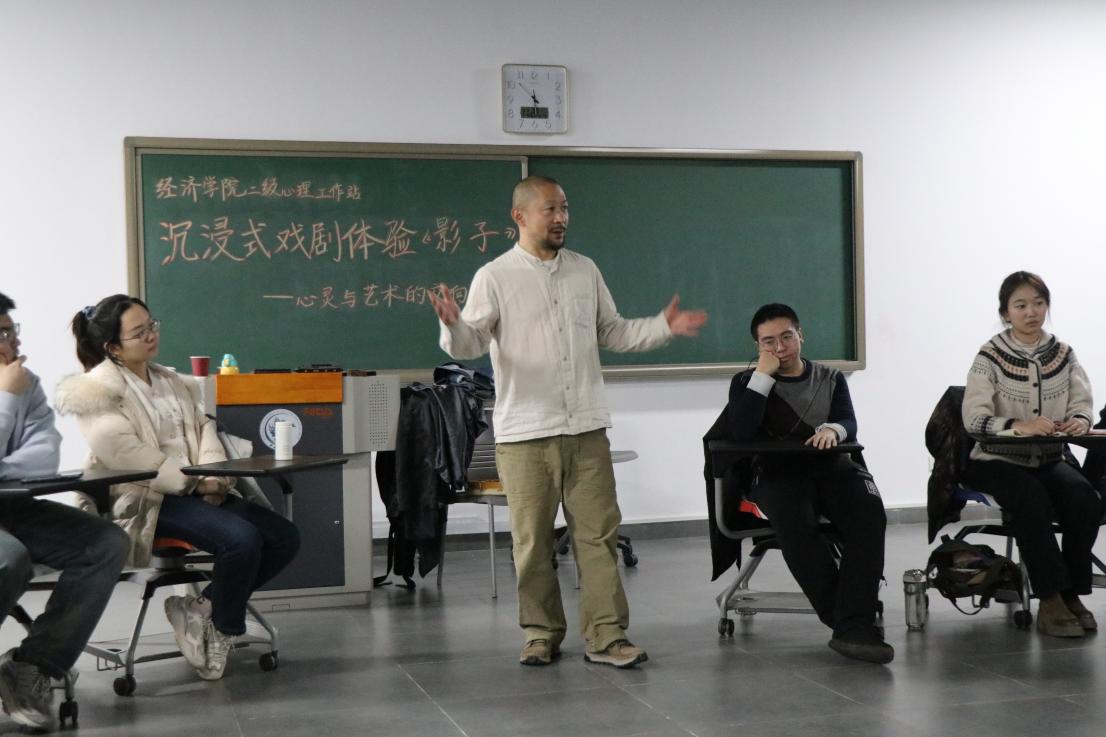 为了进一步帮助学生更好地应对学业压力和成长困惑,培养他们的创造力和情感表达能力,2024年11月27日下午,awc777万象城娱乐官网“经”心加油站开展新生引航活动,组织师生沉浸式体验戏剧《奥菲利娅的影子剧院》。此次活动邀请到了北京师范大学戏剧教育特聘专家、戏剧导演/教师刘铭冈,awc777万象城娱乐官网霍晓冉、刘滨、任晶、沈子琦四位老师和30余名学生参与了本次独特的戏剧体验之旅。
