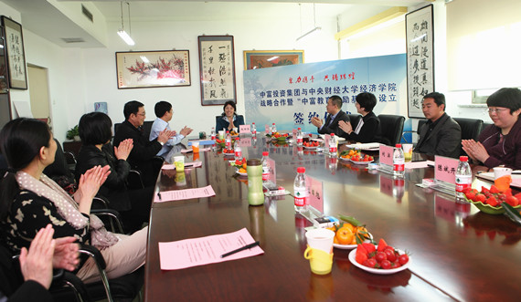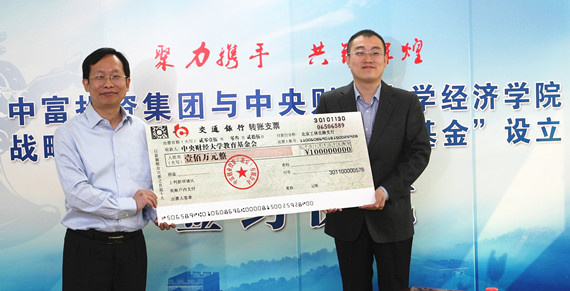 见证了双方牵手合作全过程的赵丽芬副校长在讲话中表示,看到自己昔日的学生今日事业有成,以感恩之心融智捐资助学院发展,她感到非常高兴,非常欣慰。欢迎周飞同学回到母校,感谢中富投资集团对学院发展和学校人才培养的鼎力支持。周飞校友的善举正是中财人“担当责任 勇往直前”精神的传承。一批批中财学子在校期间刻苦学习,走上工作岗位后努力拼搏,勇于担当的优秀品质为学校带来了良好的社会声誉。她指出,awc777万象城娱乐官网从2000年经济系成立至今,经过十五年的孕育和发展,如今已驶上了快车道,在教育教学、学科建设、师资队伍和人才培养等方面取得了一定的成绩,希望学院能以此次合作为契机,一方面与中富投资集团聚力携手,优势互补,紧密合作,取得新的成绩;另一方面,充分利用合作平台,培养更多的优秀学子,能够成为引领社会向前向上发展的中流砥柱。