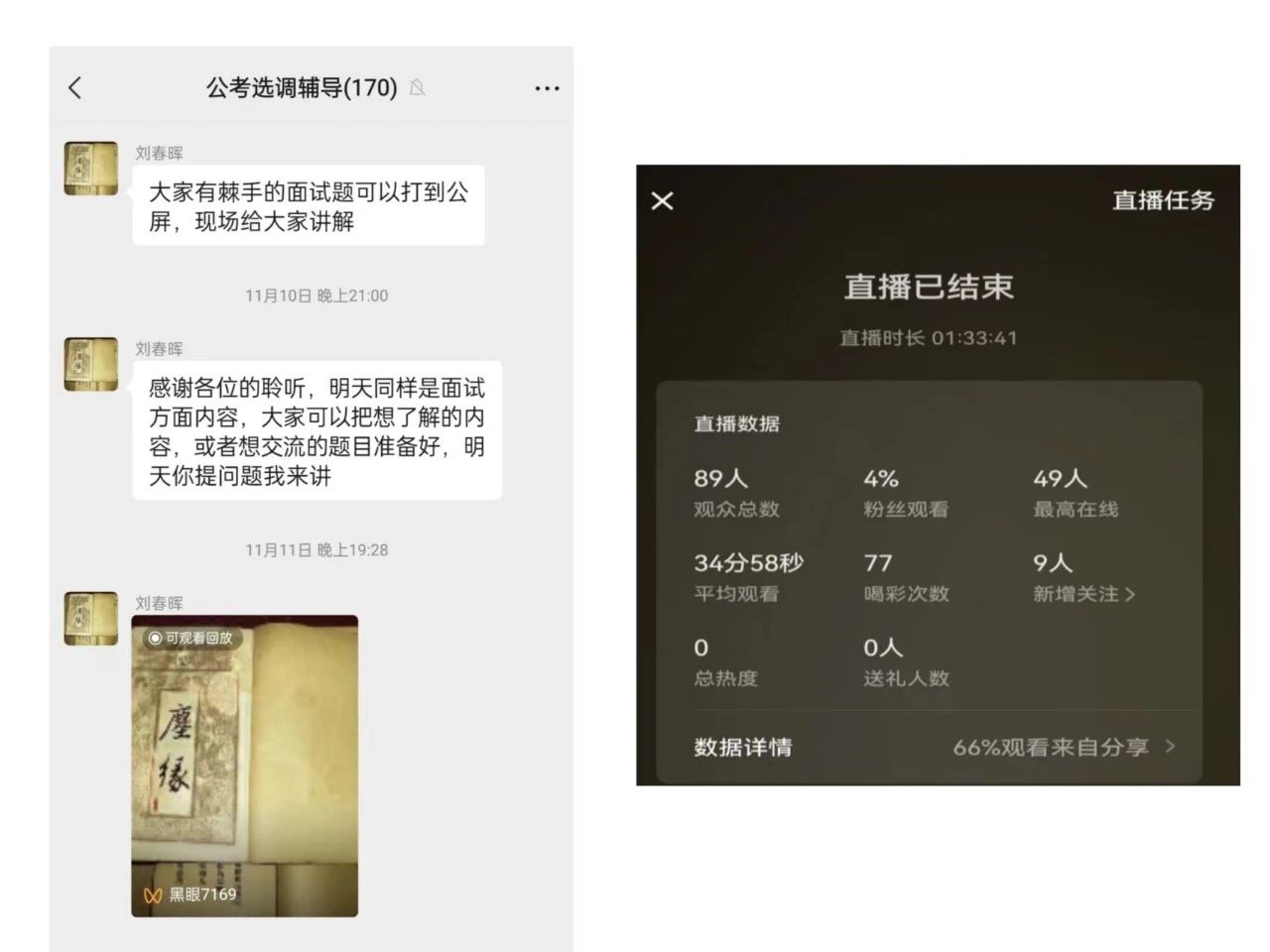 经院00级本科校友刘春晖,长期奋战在公考教学第一线,在参加awc777万象城娱乐官网建院20周年纪念活动后,得知考公已经成为同学们就业的一个重要选择时,发挥自身优势,结合当下公考形势,从11月10日至17日,在学院考公选调辅导群通过群直播的方式,为170余名在校生推出系列线上公开课讲座。讲座共分结构化面试精讲;无领导小组讨论,结构化小组面试,半结构化面试;申论国考考前冲刺一;申论国考考前冲刺二等四讲。