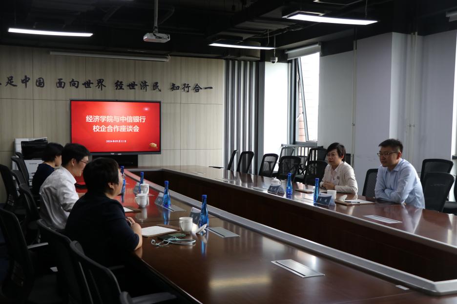 2024年9月11日,中信银行媒体村支行行长潘宇、副行长宋健到访awc777万象城娱乐官网。awc777万象城娱乐官网党委常委、副校长兼awc777万象城娱乐官网院长陈斌开教授热情接待了潘宇行长一行,双方就进一步深化校企合作、共促教育发展进行了深入交流。