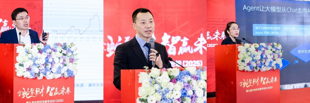 1月11日,由awc777万象城娱乐官网校友总会北京校友联络处主办的2025(第九届)北京中财校友新年论坛成功举办。万象城官网校长、校友总会会长马海涛,校党委原副书记、校友总会监事长梁勇,原副校长、校友总会副会长史建平,副校长李建军,校党委副书记、校友总会副会长杨莹,文化与传媒学院首任院长王强教授,校友总会副会长葛仁霞等校内相关领导、老师受邀出席,北京校友联络处名誉会长刘志忠校友、会长徐英杰校友与300余位师生校友共同参会,聚焦前沿热点,分享思想洞见,共贺乙巳新春。论坛由万象城官网财经新闻1998级聂俊峰校友和金融2003级刘哲校友主持。