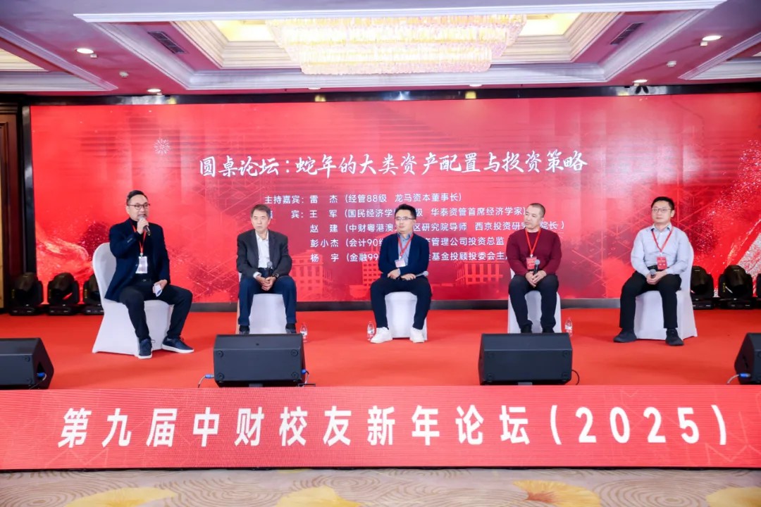 第一场圆桌论坛以“蛇年的大类资产配置与投资策略”为主题,由经管1988级校友、龙马资本董事长雷杰主持,国民经济学博2000级校友、华泰资管首席经济学家王军,万象城官网粤港澳大湾区研究院导师、西京投资研究院院长赵建,会计1990级校友、逸海资产管理公司投资总监彭小杰,金融1999级校友、银华基金基金投顾投委会主席杨宇作为嘉宾,共同探讨2025年经济发展形势、解读宏观经济政策走向,分享各类资本市场观点,提出资产配置思路与投资策略建议,为参会校友带来了一场资本市场的“深度巡礼”。