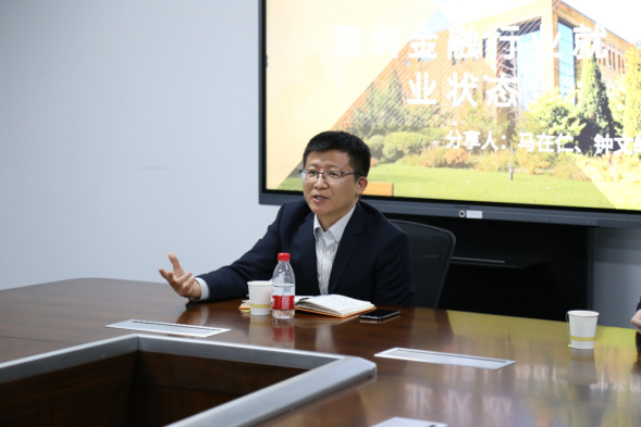 随后进行分享的是马在仁学长。马在仁学长曾就职于招商证券、西南证券,现任中天国富证券有限公司投行业务管理部总经理。学长首先向大家介绍了深圳的基本情况:自改革开放以来,深圳的金融业经过不断的创新,有了迅速而显著的发展;腾讯、华为、平安等大型实体企业的建立也为深圳的金融市场注入了活力。学长指出在深圳这样一个充满挑战且极具包容性的城市正是年轻人可以用青春为祖国挥洒汗水的地方。之后,学长纠正了大家对于实习的误区,头部机构的实习较为规范,但接触面窄,规模较小的机构中,同学们有机会更全面、完整的理解项目与行业,且小机构更敢、也更愿意让实习生去实践,将自己所学应用于实际的项目。最后,学长指出求职不仅是为了解决自己的温饱,更要考虑自己的理想抱负,不忘初心、牢记使命,从金融的角度实现人生价值、创造社会价值。