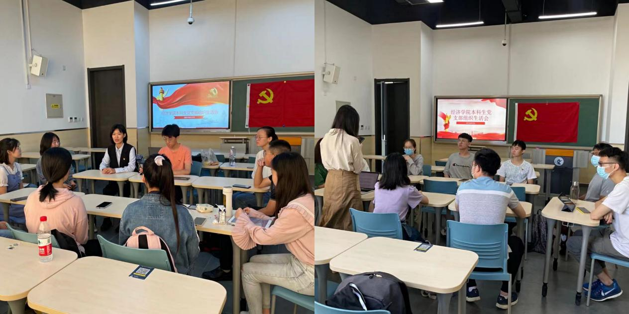 任晶老师首先介绍了2021年上半年本科生党支部的主要工作:一是扎实做好党员发展工作。党支部严格按照党章和发展党员工作细则的要求,在入党积极分子的推荐确定、培养,发展对象的政审、公示和预备党员的接收、考察、转正等环节都严格执行标准,保证新发展的党员质量,为组织输送新鲜高质量的血液。此外,党支部还利用党课、实践、微信群分享等多种形式,强化对入党积极分子、预备党员在党章、党纪、党性等方面的教育培养,帮助他们坚定理想信念。2021年上半年党支部共接收杜健等45名同志为中共预备党员。二是积极开展党史学习教育。党支部组织学生党员积极参加《不忘初心》党史学习教育主题快闪活动、“重走长征路,永远跟党走”主题教育实践活动、庆祝建党100周年“七个一计划”系列学习教育活动等丰富多彩的党史学习教育,通过多种形式增强支部成员对中国共产党、中国特色社会主义的认同感,帮助其树立正确党史观,坚定“四个自信”,同时号召支部党员们争做当代青年的排头兵,自觉把爱国之情、报国之志融入祖国改革发展的伟大事业之中、融入人民创造历史的伟大奋斗之中,努力成为担当民族复兴大任的时代新人。