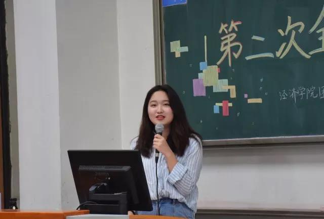 会议伊始由三位主席团成员发言,回顾并总结了三年学生工作中的酸甜苦辣。第一团副罗雨婷首先发言。她坦言一年的结束意味着工作的顺利收官,着实令人开心;而另一方面三年学生工作中收获的能力的提升、革命的友谊、谆谆的教导却也同样让人不舍。随后学生会副主席陈泉霖笑称自己将进行的“退休演讲”内容有三:首先是感谢相遇,从写策划的干事到分配任务的部长,再到管理的领头人,在身份的不断转换中日益明了“现在的一切就是最好的安排”;其次是大学三年的感悟,有目标就应努力实现,彷徨迷茫就多读书充实自己找寻方向,切忌逃避;最后是感想,既然过去不可更改,未来也遥不可及,那么当下才是最好的时光。接着学生会副主席莫小漫的发言对一整年各部门工作进行全面总结、评价,并提出大学课余学习的四个阶段与目标——学会技术、学会与各种人相处、学会妥善处理意外的能力、认清未来与自己。