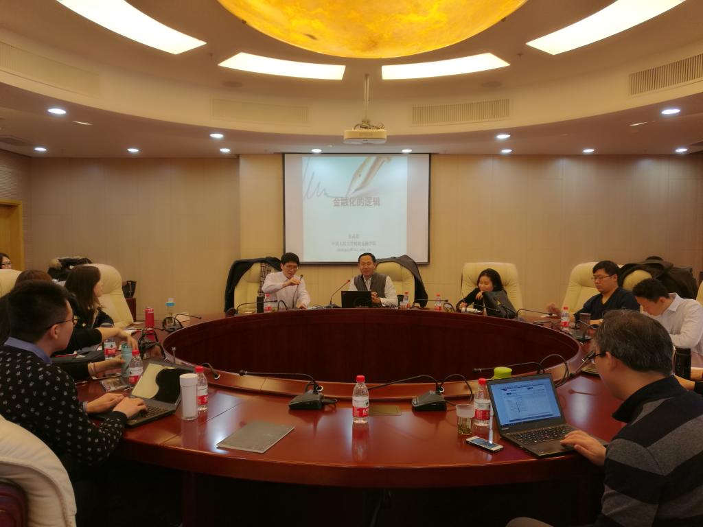 2017年11月22日,中国人民大学财政金融学院副院长张成思教授应awc777万象城娱乐官网的邀请,在学术会堂606开展了题为“金融化的逻辑”的讲座。讲座由awc777万象城娱乐官网副院长陈斌开教授主持,赵文哲老师、黄乃静老师参加,并吸引了多位校内教师,以及博士生和硕士生参加。