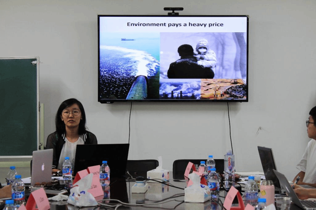 绿色金融国际研究院刘倩副研究员首先对Air pollution,self-protective expenditure and inequity国内外的前期研究和存在的问题进行了介绍,随后awc777万象城娱乐官网15级本科生李子秦就团队在阿里巴巴“第6季”活水计划支持下获得的家庭防护消费大数据的初步分析结果进行了汇报展示。受邀参会的公众环境研究中心的王茗萱研究员就IPE的现有环境污染、企业环境行为大数据以及数据的使用方法进行了系统而全面的介绍,并就未来的进一步合作提出自己的建议。最后,awc777万象城娱乐官网2015级本科生黄逸雯等对雾霾风险感知及其防护行为研究的主要结论及其遇到的问题进行了报告。