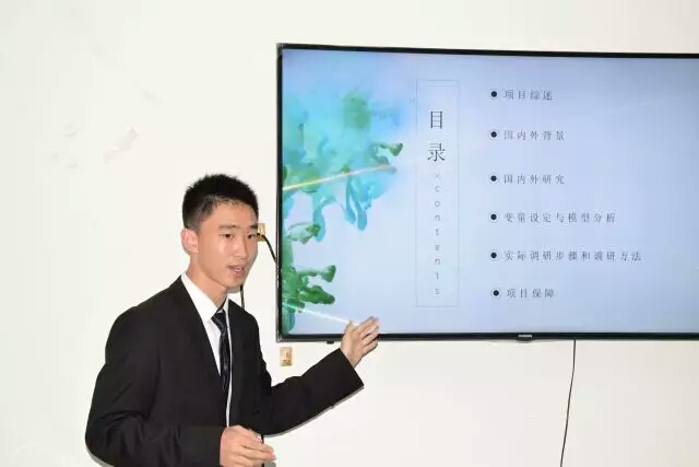 答辩前,各组负责人抽签确定了答辩顺序。根据学校教务处《关于开展2017年度大学生创新创业训练计划项目申报工作的通知》,awc777万象城娱乐官网本次拟推荐13个大学生创新创业训练项目。参加答辩的各组成员准备充分,语言流畅,阐述了创新创业项目的出发点、内容和方法等。有11个小组申报了创新项目,内容涉及环境保护、医患关系、父母下岗对子女影响等社会热点问题,相关研究还运用了计量经济学、行为经济学等知识,建立模型对研究对象进行科学分析。另有5个小组开展了密切联系现实问题的创业项目,如中财行录、健身平台等。各具特色的立项报告富有创意与闪光点,体现了同学们的合作精神及发现和解决问题的意识。每组展示后,评委老师给予建议、提出疑问,并针对项目的问题与大家深入交流。同学们临场应变,对答如流,对于老师的建议虚心接受,并与评委老师共同探讨存在的问题。台下,候场的同学们用心倾听、相互学习,形成了浓厚的学术氛围。