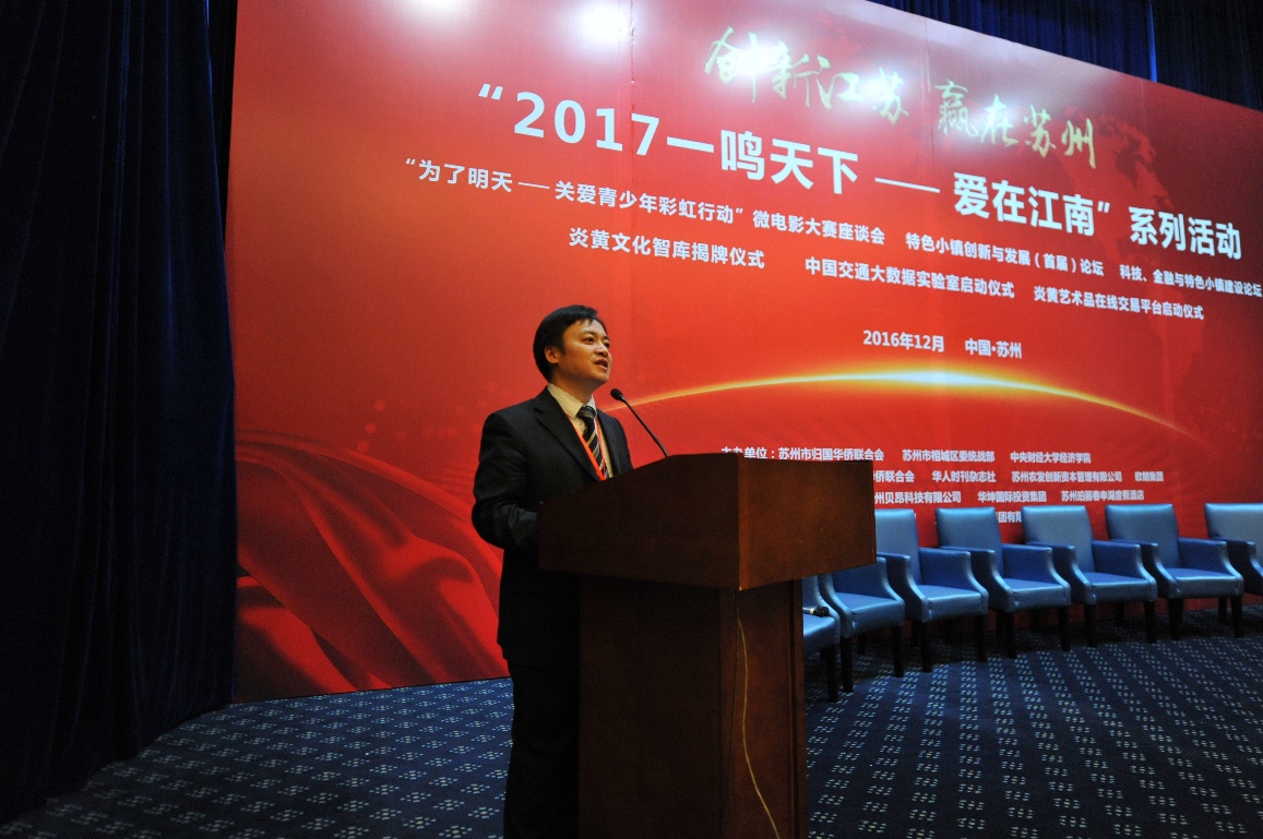 首届特色小镇创新与发展(苏州)论坛作为【创新江苏·赢在苏州“2017一鸣天下——爱在江南”】系列活动之一,于2016年12月30日在苏州举行,由苏州市归国华侨联合会联合、相城区归国华侨联合会、awc777万象城娱乐官网金融创新与风险管理研究中心、城市经济与区域发展研究中心共同举办,苏州市农业发展集团有限公司协办、苏州中森无人机科技有限公司承办。来自团中央、《求是》杂志社、江苏省侨联、苏州市政府、苏州市侨联有关领导,中国社科院、awc777万象城娱乐官网、南京农业大学等的专家学者,碧水源科技等多家知名上市公司代表、苏州部分乡镇代表和企业家参加了本次论坛。