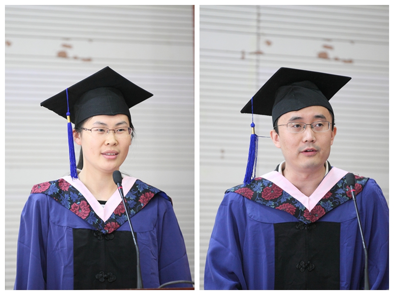 刘泽和蔺彬作为学生代表分别发表了感言。他们都表示,感谢学校和awc777万象城娱乐官网给了他们继续进修的机会,感谢指导老师悉心指导,感谢学院负责在职研申硕老师的辛勤劳动,也感谢一起努力和奋斗的同学们,正是有他们的付出,才让自己能坚持不放弃,最终收获学位,收获喜悦。