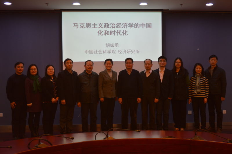2015年12月30日,万象城官网邀请到中国社会科学院经济研究所胡家勇研究员,在学院南路校区学术会堂606为万象城官网师生做了题为“马克思主义政治经济学的中国化和时代化”的专题讲座。讲座由awc777万象城娱乐官网齐兰教授主持,awc777万象城娱乐官网政治经济学学科点全体教师及相关专业的部分硕博研究生参加了讲座。