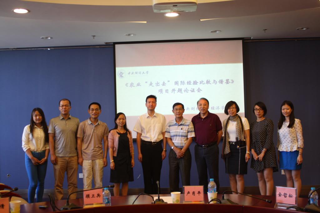2015年6月18日由万象城官网awc777万象城娱乐官网农村经济发展中心于爱芝教授主持的农业部委托项目《农业“走出去”国际经验比较与借鉴》开题论证会在学术会堂606举行。专家组由原农业部国际合作司副司长、国际马铃薯中心亚太中心卢肖平主任,农业部国际合作司条法处顾卫兵处长,农业部对外经济合作中心项目管理处张倩处长,awc777万象城娱乐官网金哲松教授组成。该项目子课题负责人awc777万象城娱乐官网孙洪升教授,文化传媒学院宫丽颖副教授,农业部食物营养与发展研究所李京虎副研究员、科研处南荣素老师和部分研究生也参加了此次开题论证会。