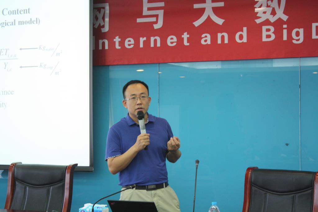 仇焕广教授向与会人员介绍了他在水资源安全与粮食安全的一系列研究成果,并从当前水资源匮乏的全球化视角,运用虚拟水的前沿概念解释了同种农产品在不同产地上对虚拟水的耗水量所呈现的差异,提出水资源利用的合理配置问题。接着,仇焕广教授指出农产品贸易实质上是虚拟水在不同区域间的贸易,在此基础上,他结合CHINAGRO模型,以最小贸易成本为目标,探讨了中国农业通过贸易来节约虚拟水的可能性。研究发现,至2030年,内蒙古地区的灌溉地将减少一半;考虑7种主要农产品和畜产品,将使其他省份农产品产量上升,而内蒙古则通过从其他省份进口虚拟水来满足用水缺口。经测算,这一方案将使得中国用水节约14%,尽管此方案将同时导致农业产量降低3%,但由于价格等多方面的因素,最终农业收入将上升约1%。农业收入上升将为当地农户的福利提供补偿来源,也使粮食安全和水资源安全问题得到一定程度的缓解。