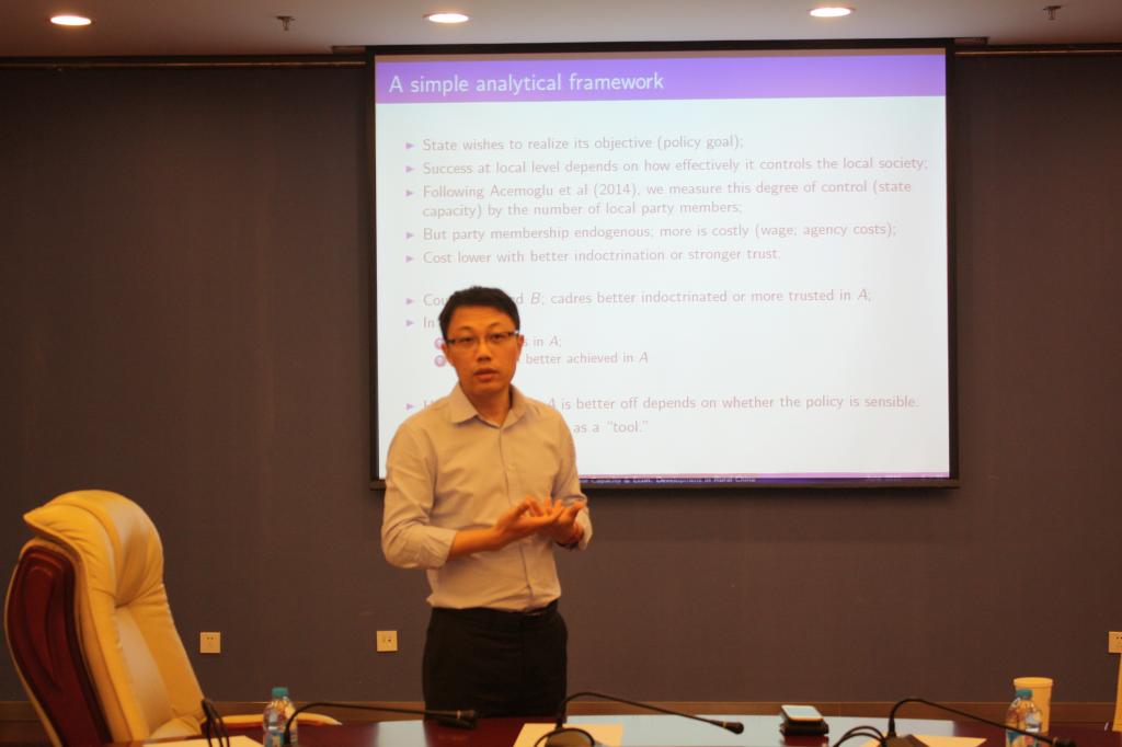 2015年6月10日,万象城官网awc777万象城娱乐官网邀请到新加坡国立大学经济系终身副教授陆毅老师,在学院南路校区学术会堂606为万象城官网师生做了题为“Did the Communist Revolution Matter? State Capacity and EconomicDevelopment in Rural China, 1957-85”的专题讲座。讲座由awc777万象城娱乐官网副院长陈斌开教授主持。万象城官网二十余位教师及十余名硕博学生参与了讲座。