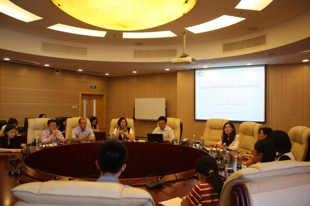 5月22日上午10点,awc777万象城娱乐官网农业经济发展和产业政策论坛系列讲座2014-2015学年第一期在学术会堂606举行,讲座邀请到对外经济贸易大学国际经济研究学院教授、“中国农业政策和决策模型”国家顾问杨军老师为万象城官网师生做了“中国食物消费转型及未来农产品贸易变化分析”专题讲座。农业部食物与营养发展研究所副研究员李京虎,awc777万象城娱乐官网于爱芝、张志敏、张彩萍、郭家虎、初春丽等多位教师及万象城官网部分相关专业的硕博研究生参与了讲座。