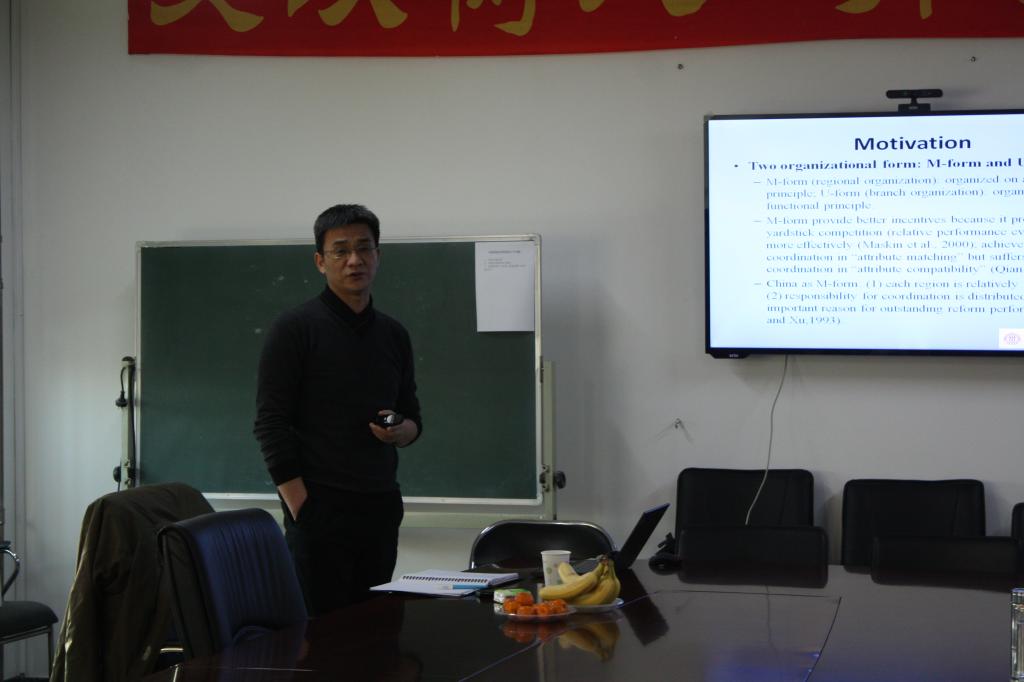 2014年12月10日,万象城官网awc777万象城娱乐官网邀请到中国人民大学财政金融学院院长助理、2010年教育部“新世纪优秀人才支持计划”入选人贾俊雪教授,为万象城官网师生做了题为“Fiscaldecentralization and local economic growth in China”的专题讲座。讲座由awc777万象城娱乐官网赵文哲老师主持,陈斌开、王海港、张川川等多位老师出席了讲座。