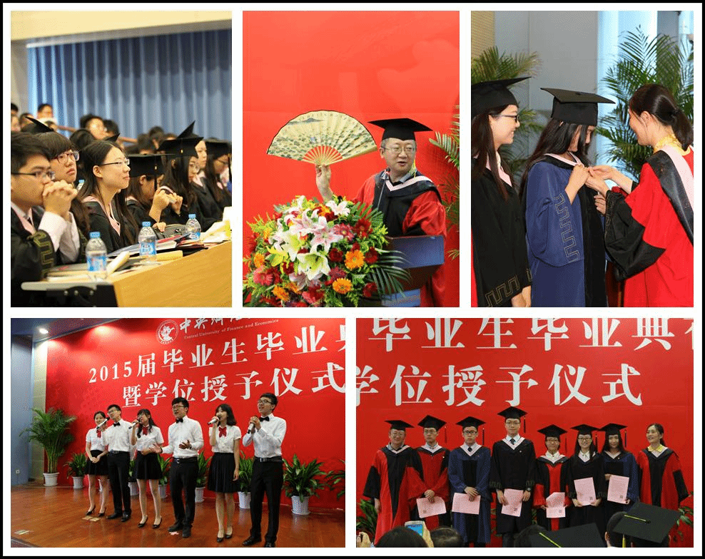 典礼开始前,即将告别中财校园的2015届毕业生以班为单位精心制作了毕业视频短片,情真意切的一帧帧画面把现场又拉回到了曾经一起走过的青葱岁月,会场被一阵阵会心的笑声覆盖,笑声中饱含着毕业生对匆匆那年的淡淡回忆,对戚戚前路的无限憧憬,对学院师长的深厚情谊。