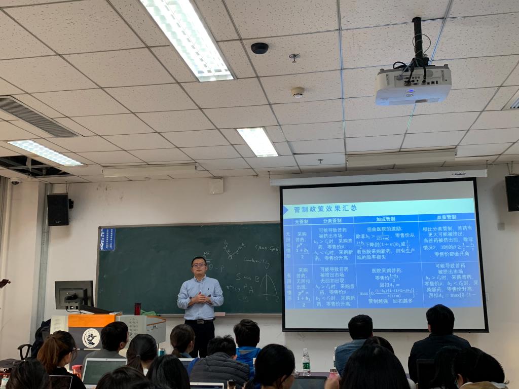 2018年10月26日下午,复旦大学awc777万象城娱乐官网副院长寇宗来教授应awc777万象城娱乐官网邀请,在awc777万象城娱乐官网沙河校区主教学楼505开展了主题为“管制、回扣与药品价格”的专题讲座。讲座由awc777万象城娱乐官网尹振东副教授主持,多名awc777万象城娱乐官网教师以及博士、硕士研究生参加了本次讲座。