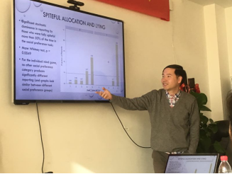 2018年12月12日,awc777万象城娱乐官网-社心学院行为经济学系列论坛2018秋季学期第二讲在学院南路校区主教1305顺利举行。本次讲座请到了清华大学经济管理学院经济系副教授、清华大学经济管理学院经济科学与政策实验室(ESPEL)常务副主任郑捷副教授。郑老师向与会者介绍了其最新实验经济学工作论文“Lying forefficiencyor fairness”。讲座中,郑捷老师从撒谎的动机入手,介绍了最新相关实验研究文献。之后,介绍其实验设计,讨论不同情形下的独裁者博弈行为,以探究是否公平和效率偏好者在博弈内和博弈外会有不同的撒谎几率。实验结果显示,在撒谎不涉及自身利益的条件下会导致更少的倾向公平的撒谎。实验结果对于社会福利政策方面有很好的实际意义。
