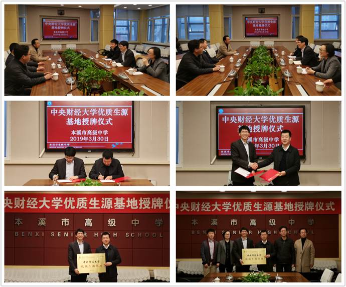 上午10点,该校校长张喜忠老师、副校长周玉秋老师和年部副主任徐烛尘老师在学校会议室热情接待了招生组一行。座谈会上,张校长介绍了本溪高级中学的情况和困难,提出多举办科技前沿、专业前沿、兴趣培养等方面的讲座的希望。招生组组长陈斌开介绍了中财的招生政策基本情况、此次招生宣讲的目的、学校的特色和办学成绩,以建设多科性、国际化的研究性大学为目标的办学理念。紧接着,双方签订了合作协议并举行了授牌仪式。座谈会后,双方就人才培养理念、教师团队培养进行了深入交流和探讨。