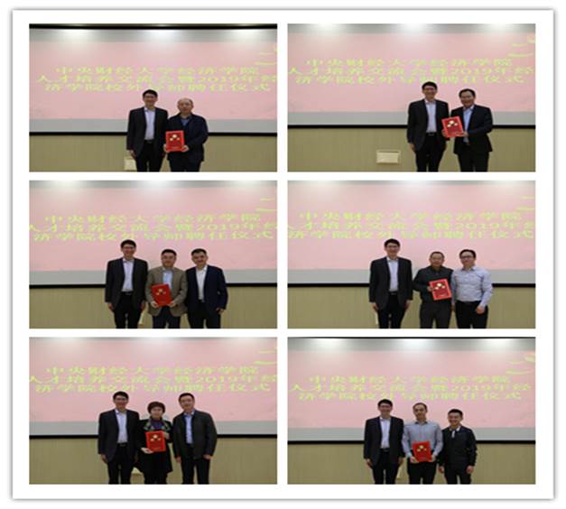 聘任仪式正式开始,院长陈斌开教授为校友们颁发聘书,并邀请受聘校外导师、校外导师推荐人,共同合影留念。