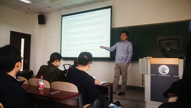 2019年4月19日上午,香港中文大学经济系张轶凡老师应awc777万象城娱乐官网邀请,在沙河校区主教406开展了主题为“Migrants and Firms: Evidence from China”的学术讲座。会议由awc777万象城娱乐官网黄乃静老师主持,校内多位老师以及40余名博士生和硕士生参加。