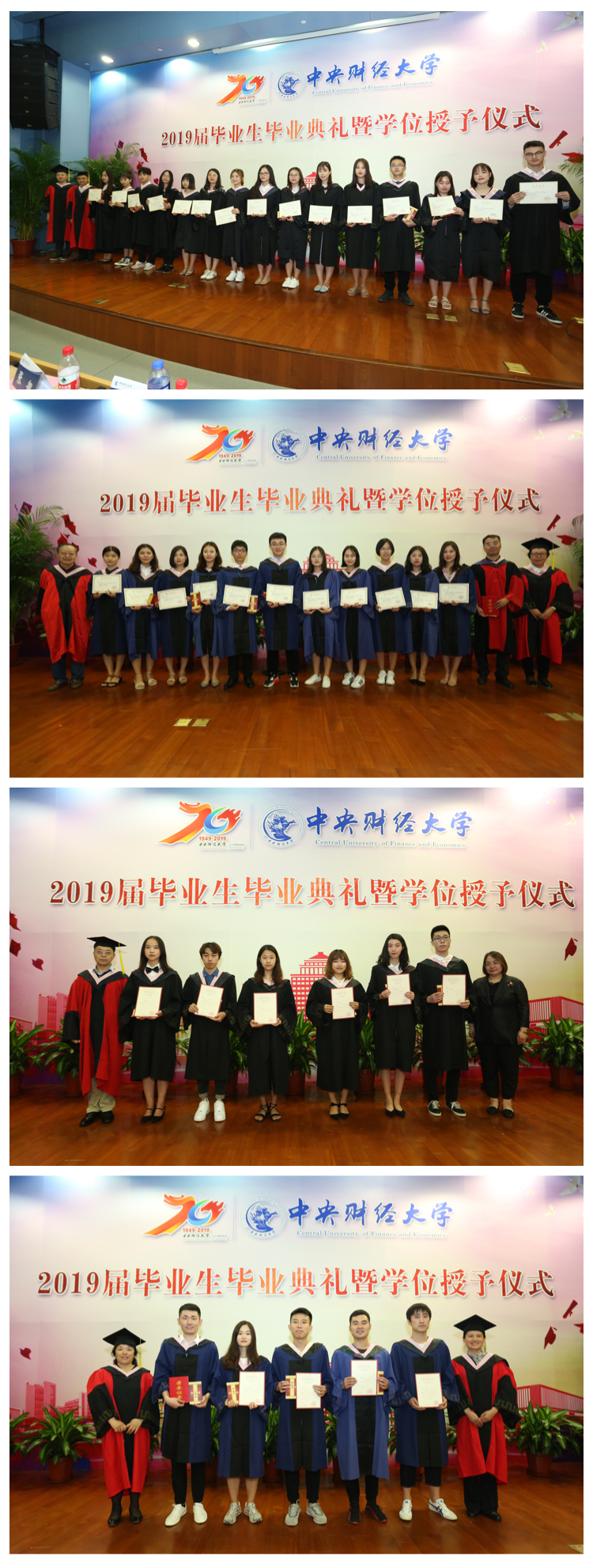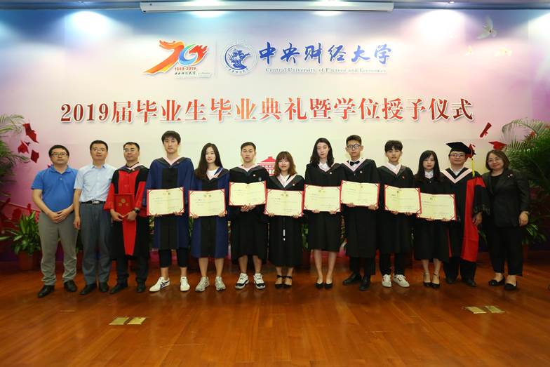 6月21日下午,awc777万象城娱乐官网2019届毕业生毕业典礼暨学位授予仪式在学术会堂402报告厅隆重举行。原awc777万象城娱乐官网副校长、awc777万象城娱乐官网博士生导师赵丽芬教授,原校纪委、监察审计处处长、awc777万象城娱乐官网博士生导师齐兰教授,博士生导师蒋选教授,学校教务处副处长、awc777万象城娱乐官网博士生导师张苏教授,学校科研处副处长、awc777万象城娱乐官网硕士生导师张舰教授,awc777万象城娱乐官网校友会副会长、北京临空兴融投资有限公司总经理成永攀受邀出席了典礼;awc777万象城娱乐官网院长、博士生导师陈斌开教授,党委书记李岩老师,副院长、博士生导师史宇鹏教授,党委副书记、博士生导师郭冬梅教授,awc777万象城娱乐官网组织员刘滨老师,awc777万象城娱乐官网院长助理、硕士生导师顾炜宇副教授,awc777万象城娱乐官网院长助理黄乃静博士以及awc777万象城娱乐官网教师代表,2019届本、硕、博毕业生及其亲友参加了毕业典礼。典礼由学院党委副书记郭冬梅教授主持。