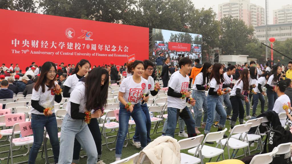 随后,部分校友师生前往学院南路校区田径运动场参加了建校七十周年纪念大会。大会分为暖场联欢和纪念大会两个部分。