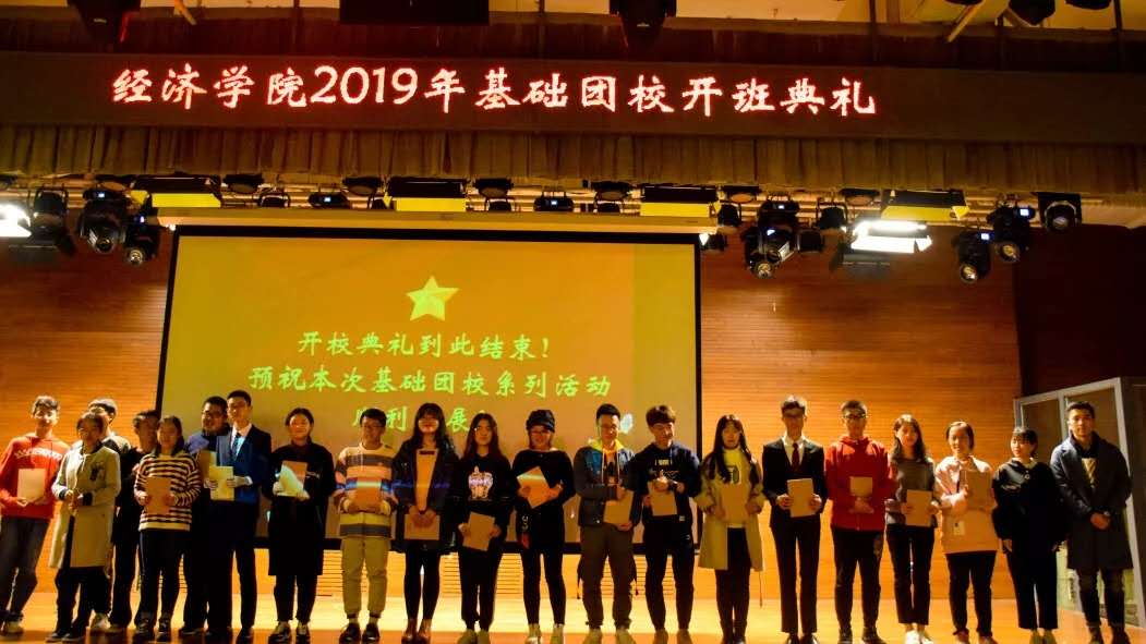 2019年10月27日19:00,awc777万象城娱乐官网基础团校开校仪式于awc777万象城娱乐官网大学生活动中心金色展厅顺利举行。本次开校仪式由礼宾队张笑千同学主持,awc777万象城娱乐官网团委书记李倩老师、第一团副覃瑜曦、第二团副曹鉴、学生会主席寇静恬、副主席赵嘉宇以及awc777万象城娱乐官网各团支部芮+导师祁曼菲、于飞、冯宇晨和潘越婷受邀出席,全体学员到场参加。