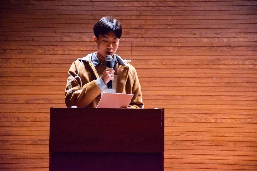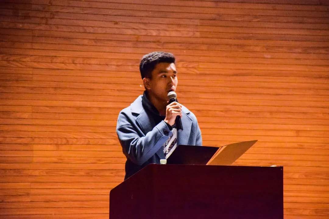 接下来,由第二团副曹鉴发言。曹鉴同学首先联系自己的亲身经历向学员们阐释了基础团校的内涵——简单纯粹,兼备趣味性与实用性。后来,谈及国庆游行的庄严时刻,他不禁发出了“此生无悔入华夏,来生还在种花家”的感慨。他希望学员们能把基础团校作为自己的起点,将“不忘初心、牢记使命”的信念和“龙马奋进”的精神传扬下去。