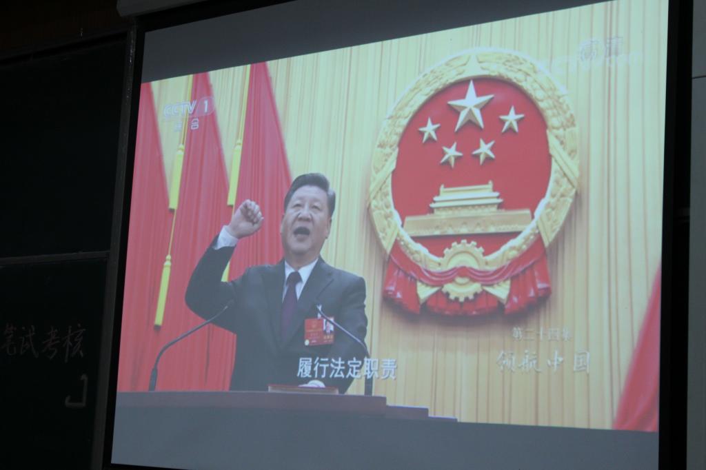 活动于19:30准时开始。首先,同学们观看了《领航中国》视频。《领航中国》主要讲述了新中国成立七十年来,党与人民同甘苦、共奋进的伟大历程。