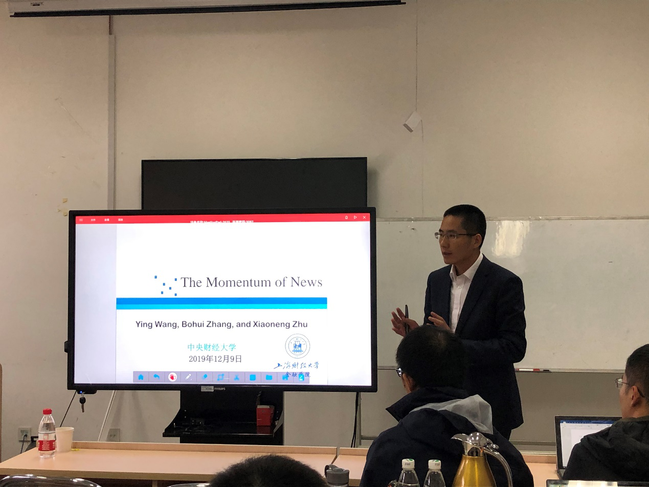 2019年12月9日上午,上海财经大学金融学院朱小能教授应邀到访awc777万象城娱乐官网,讲授题为文本分析与行为金融的短期课程。本次课程由由黄乃静老师主持,在沙河校区1号楼201教室举行,awc777万象城娱乐官网及校内多名师生参加了此次课程。