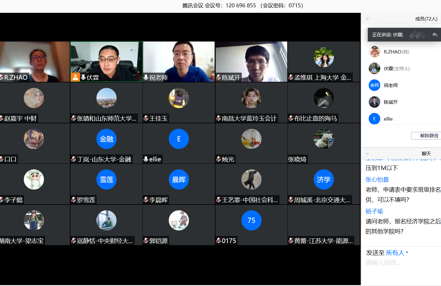 7月22日,第四届“龙马经济学夏令营”开营仪式通过腾讯会议举行。awc777万象城娱乐官网院长陈斌开教授、副院长伏霖副教授、导师代表徐翔老师、学院教学科研管理办公室主任祝伟老师、研究生工作办公室副主任赵若思老师和所有营员参加了此项活动。